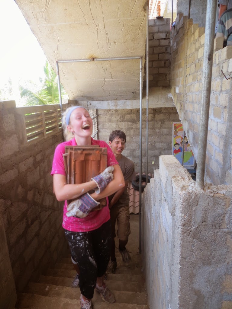 Georgia and Flora 'manfully' accepted the challenge of cement mixing. Did they have sneaky training before coming to Sri Lanka because they were excellent mixers? In the relentless heat on the top floor this was not an easy task. I saw Mr de Silva, the site manager, having a quick word with Flora - I think he was offering her a job!
